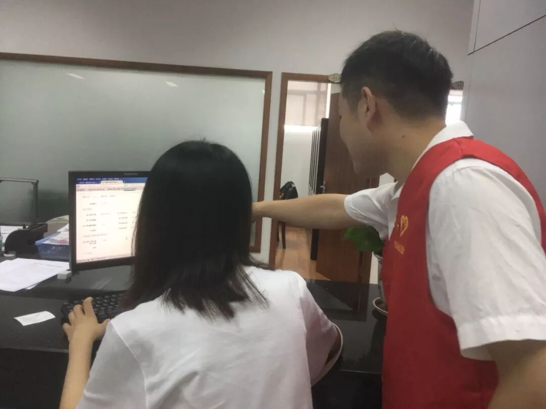 图为先锋领跑志愿者指导毕业生操作网上就业协议鉴证